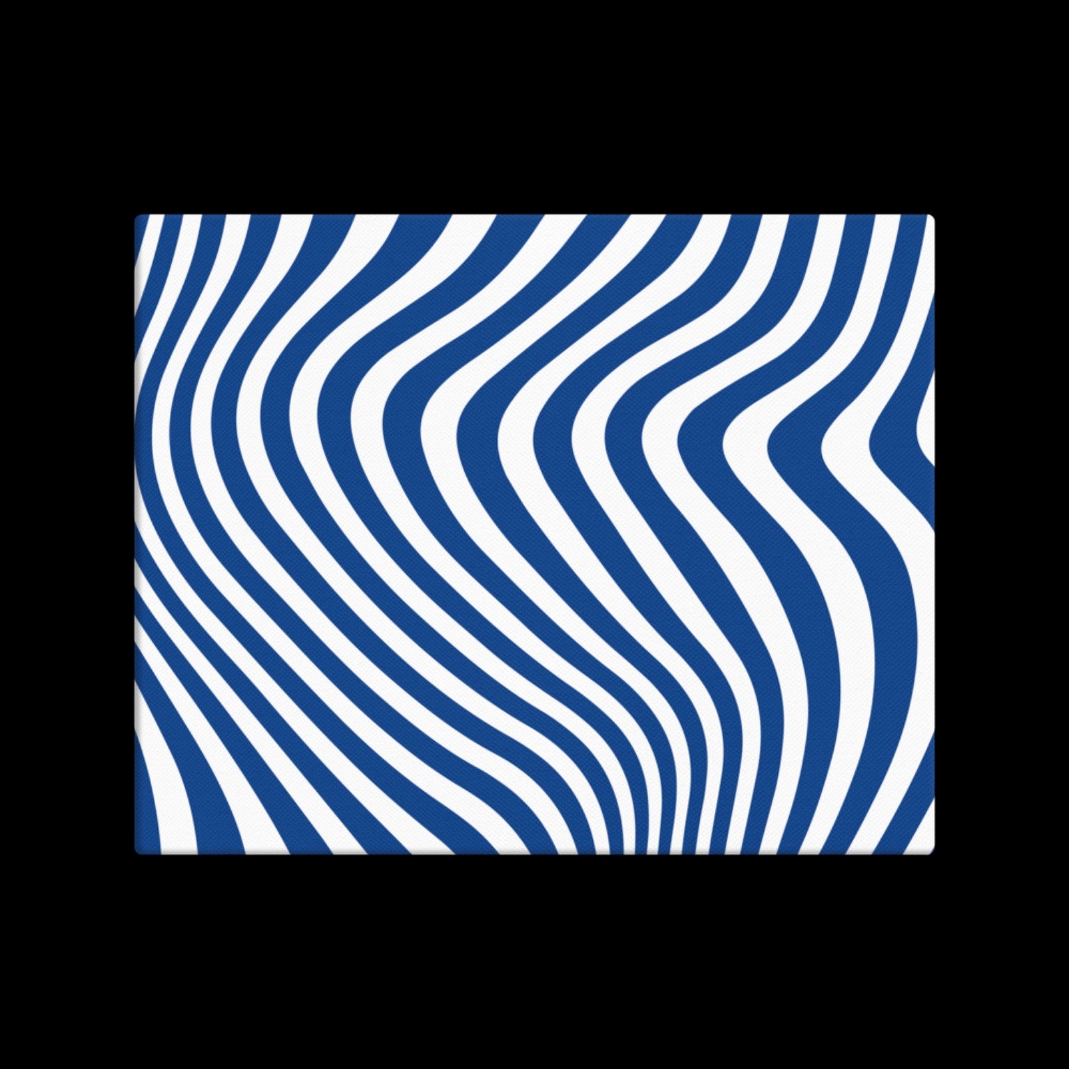 Optic Ease explores movement through restraint. Flowing blue and white lines create a subtle visual rhythm—inviting the eye to travel, pause, and recalibrate. The result is a piece that feels both dynamic and calming, balancing energy with control.